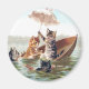 Trabalho de arte de colheita de gatinhos que levaram o barco para o lago e sofreram um acidente de barco. Um gato ainda se senta no barco segurando um guarda-chuva frágil enquanto os outros três voltam a subir.