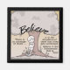 O garotinho se inclina contra uma árvore com as palavras BELIEVE escrito nas folhas. Não faltam dúvidas... É a abundância de crenças que muitas vezes é ignorada. Acredite no incrível que é você! ©Little Boy, Big Dreams, LLC e David A. Carrizales e trabalho de arte © Christie Black