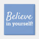 Citação motivacional e inspiradora: "Acredite em si mesmo!" Um ímã com palavras de sabedoria para viver. Design tem uma fonte branca sobre fundo azul que pode ser facilmente personalizada na seção da ferramenta Zazzle design.