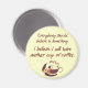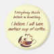 "Todo mundo deveria acreditar em algo. Acredito que vou tomar outra xícara de café." Uma cúpula de café engraçada, perfeita para qualquer amante de café! Texto elegante, escrito à mão, sobre uma imagem estilizada de uma xícara de café a vapor e um feijão de café em roxo e marrom.
