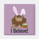 Acredito! Páscoa de coelho vestindo coelhos com um cheio de cesto de ovos coloridos