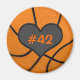 Este ímã é excelente para o jogador de basquete ou para mostrar suporte para um! Design apresenta uma bola de basquete laranja com um coração negro e um quarto para os seus jogadores de basquete personalizados!