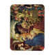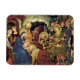 Pintura de arte vinda da Santa Família cercada por uma multidão adoradora com mangueira no fundo. Pintado por Gentile da Fabriano, um antigo artista renascentista italiano.