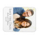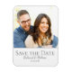 Um adorável íman de fotos de data. Este é um item funcional excelente para o seu casamento. Exibindo uma bela modelo para inserir sua foto, "Salvar a data" é escrito em prata. Na foto está o nome do casal e a data do casamento. Personalize o preenchimento e a borda da forma, bem como a cor e o tipo de fonte usados. Escolha o seu hoje!