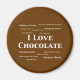 Adoro Presentes de Chocolate em letras grandes com Combustível de Chocolate, Leite de Chocolate, Chocolate Escuro, Sorvete de Chocolate Triplo, Chocolate Quente, Bolo de Chocolate, Sacuja de Chocolate, Morangos Cobertos de Chocolate, Xarope de Chocolate, Chocolate Chip Cookies, Chocolate Shake e Mousse de Chocolate em caracteres menores. Excelente daquele Chocolic em você.