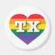 Este ímã apresenta um coração de orgulho arco-íris contendo as letras maiúsculas, brancas e em negrito TX, a abreviação oficial do Texas, o estado estelar solitário. Mostre suas cores verdadeiras, apoie a igualdade do casamento e comemore a orgulho gay.