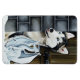 Rouco e dragão branco saindo do castelo de inverno para sair em uma aventura.
