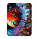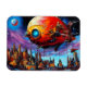 +{ AI Art }+ Uma nave espacial colorida paira sobre uma cidade medieval em outro planeta.