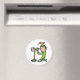Design de observação de pássaros humorísticos. Um ornitólogo entusiasmado - que é o observador do pássaro para nós - observa o horizonte para espécies raras enquanto um pássaro se posiciona sobre seu chapéu. Imagem de ornitologia para amigos e entusiastas de pássaros.