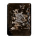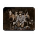 Imagem retrorreflectora angustiada de soldadores colocados juntos numa fábrica ou num estaleiro naval. Imagem de Vintage a partir dos registros do dominio público