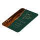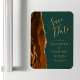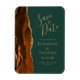 Este elegante ímã de salvar a data moderno apresenta uma borda de ágata com efeito de aquarela laranja queimada, decorada com brilho dourado falso. Personalize facilmente o texto dourado sobre um fundo verde escuro.
