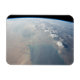 Vista do espaço mostrando as águas azuis tropicais do Golfo Pérsico e depois os céus cheios de poeira como uma grande tempestade de poeira obscurece o Golfo e a sua margem norte. Ventos fortes ventos do norte sopram muitas vezes na região no verão, gerando poeira de todo o comprimento dos desertos nos vales Tigris e Euphrates (no alto à esquerda). A poeira obscurece parcialmente centenas de quilômetros de terras agrícolas verdes e claras ao longo desses rios no Iraque (esquerda). Uma linha de tempestades sobe ao longo da borda das Montanhas Zagros do Irã, e o pôr do sol lança sombras longas dessas anteparas.