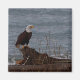 Águia em South Beach. Uma peça original representando uma águia careca desfrutando um momento na praia. A cena está em Point Roberts, Washington em South Beach. Possui uma águia careca, madeira derivada e oceano.