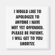 Gostaria De Pedir Desculpas A Quem Ainda Não Me Ofendeu. Por Favor, Seja Paciente. Eu Irei Até Você Em Breve.