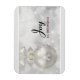 Um ímã com um design de feriado mágico. Apresentando uma bola prateada de Natal com decorações em flocos de neve e terminando com um bonito arco prateado. O fundo é uma ilustração de luzes de prata com estrelas elegantes espalhadas por toda parte. Texto diz: Joy to the world.