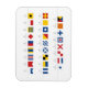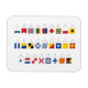 Sinalizadores de código de sinal para o transporte marítimo internacional. Estas bandeiras náuticas coloridas incluem tanto a letra como a palavra.