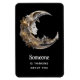 Magnet com uma bela ilustração. Um rosto feminino na lua rodeado de flores. O texto diz: Alguém está pensando em você.