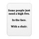 Para o amante sarcasmo em todos nós. Vejam esta bruxa: "Algumas Pessoas só precisam de cinco. Na cara. Com uma cadeira." design no roupa, canecas, mousépias, botões e outros presentes únicos.
