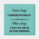 Este ímã mostra as palavras "Alguns dias, eu me surpreendo! Outros dias, coloquei minhas chaves na geladeira!" A cor de fundo pode ser alterada. Aproveite seus novos alguns dias, eu me surpreendi!