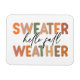 Este trabalho de arte de queda vibrante captura perfeitamente a aconchegante essência da estação com sua tipografia divertida e paleta de cores quentes. A design apresenta a frase ousada "Clima Suéter" em letras grandes e achatadas que se alternam em tons de laranja, bege, verde e marrom, evocando a mudança de cores das folhas do outono. A frase "olá cair" está enterrada, escrita em uma escrita fluente e cursiva que adiciona um toque de elegância e calor à design.