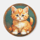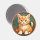 Magnet com um gato laranja no estilo de Alphonse Mucha! Este gatinho adorável com olhos verdes é enquadrado pelas folhas do outono. Um presente maravilhoso para amantes de gatos e colecionadores de Art Nouveau!
