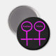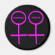 Este maravilhoso ímã foi projetado para lésbicas. Ele apresenta dois símbolos femininos cor-de-rosa, lado a lado. O plano de fundo é preto e existe um dentro de texto rosa personalizável para cada um dos símbolos para colocar nomes. Surpreenda a sua arte com este lindo presente personalizado.