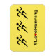 Um simples slogan em texto preto com um coração vermelho, e um pictograma de três corredores acima. Amarelo de fundo. Perfeito para mostrar seu prazer em esporte e exercício. #LoveRunning.