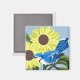 Ímanes de pássaros com Blue Jay e sunflower art.