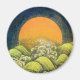 Uma paisagem colorida elegante com sol amarelo, ondas do mar em cores vibrantes preto, verde e branco reelaboradas de uma antiga miniatura japonesa. Amaterasu é parte do ciclo do mito japonês e também uma grande divindade da religião Shinto. Ela é a deusa do sol, mas também do universo. O nome Amaterasu derivado de Amateru significava "brilhar no céu." Amaterasu-ōmikami significa "o excelente August kami (deus) que brilha no céu".Para Amaterasu também é creditado que inventou o cultivo do arroz e do trigo, o uso de bichos-da-seda e tecelagem com o tear.