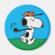 Snoopy, o querido beagle da banda desenhada dos amendoins, está representado nesta design balançando um clube de golfe.