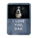 Lembre-se do quanto você é amado com isso Eu te amo, Pai personalizado Magnet Foto de Cachorro. Adicione uma foto favorita do seu amigo de quatro patas ou outro animal de estimação amado e prepare seu coração para derreter toda vez que você olhar para aquele rosto doce. Perfeito para casa ou escritório, este ímã personalizado faz um presente especial para qualquer pai de cão. Fundo azul escuro com fundo de fotos preto. O design também está disponível com um fundo de fotos branco.