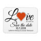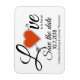 Casamento salve o ímã de data feito em branco com texto preto lendo Amor está no ar, com um coração vermelho com uma seta substituindo o o apaixonado. Personalize os nomes e a data do casamento para atender às suas necessidades. Excelente maneira de anunciar os vossos futuros núpcias antes do tempo.