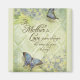 COLOR PALETTE: verde macio, azul, castanho e preto. DESIGN COLLECTION: Hídrangeas e borboletas azuis elegantes e lindas enchem a design, todas pintadas manualmente por Audrey Jeanne Roberts. Cada borboleta é pintada em tons vibrantes de azul aqua a azul real com toques de lavanda e preto. O fundo é um padrão de estilo verde de sábio macio, damasco de diamante que tem a sensação de papel de parede antigo. Celebre o amor de sua mãe de uma forma especial e prática! A design também apresenta seu texto original e animador: "O amor de uma mãe cresce mais forte quanto mais ela o dá."