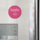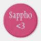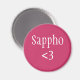 Uma imã de geladeira rosa "Sappho <3", perfeita para qualquer fã de Sapho! Sappho era um antigo poeta grego, e uma mulher. Ela vivia na ilha de lesbos, possivelmente tinha uma filha, e escreveu poemas sobre seu amor por outras mulheres.