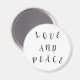 Palavras bonitas de letra de texto amam e paz em um fundo de cor simples.