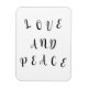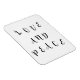 Palavras bonitas de letra de texto amam e paz em um fundo de cor simples.