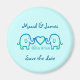 2 elefantes verdes-azuis bonitos segurando coração para o seu anúncio "salve a data". O texto e a cor do plano de fundo são personalizáveis.