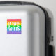 Este trabalho de arte apresenta um arco-íris colorido com as palavras Love Wins.