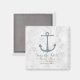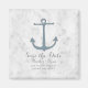 Perfeito para um casamento temático náutico é esta Imã salve a data de Âncora Rústica com uma âncora azul num fundo de mármore de cinza clara. Esta imã salve a data clássica e simples é fácil de personalizar com seus detalhes de casamento. Localize mais opções de personalização clicando em Personalizar.