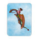 Uma jovem caminha um dragão arco-íris nesta colorida trabalho de arte de fantasia de Richard H. Fay.