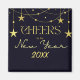 Levante um brinde ao futuro com "Saúde ao Ano Novo" escrito em texto de ouro radiante, acentuado por estrelas cintilantes sobre fundo azul profundo. Personalize-o com uma data personalizada para tornar a sua celebração única e memorável e na moda.