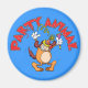Cachorro engraçado com barulheira e correias e texto vermelho Festa Animal.
