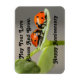 Foto bonita de uma casal de joaninha sentada em uma folha de plantas, é mostrada neste ímã. Com a mensagem, "Que Seu Amor Bloqueie E Cresça. Feliz Aniversário". Um doce presente para dar essa casal especial para o aniversário deles!