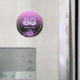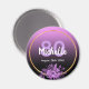 Ímã glamoroso para um aniversário de 80 anos com preto e rosa elegante e moderno, gradiente roxo, fundo ombre. Com uma moldura dourada falsa e flores aquareladas roxas e violetas. Modelos para nome, idade e data, letras brancas e roxas. Perfeito como um souvenir ou como um lembrete de salvar a data para seus convidados.