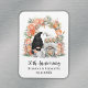 Ímã de lembrança personalizado de aniversário de casamento de 50 anos com um design apresentando gnomos de noiva e noivo e uma ilustração de arco floral de pêssego. Edite o modelo com qualquer ano e mensagem.
