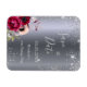 Uma Imã salve a data para uma festa de aniversário 50ª (ou qualquer idade). Um fundo metálico de aspecto prateado escuro. Decorado com púrpura escura e flores cor-de-rosa-burro e rosa, pó falso prateado brilhante. Personalize e adicione um nome, idade e data. O texto: Salvar a Data é escrito com um grande script de estilo escrito manualmente.