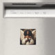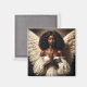 O ímã apresenta trabalho de arte de pintura a óleo de um anjo preto de pele escura com cabelo ondulado grosso e asas grandes, com as mãos pressionadas juntas em uma posição de oração, seus olhos fechados. Estética angel-core de melanina com uma figura bíblica sobrenatural com aparência africana.