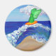 (A pintura é de um anjo verde em uma prancha laranja capturando uma onda. Um sol brilha no fundo e palmeira suavemente se move na praia. A onda está se preparando para cair na praia, suavizando a superfície arenosa. O anjo verde homenageia o Arcanjo Raphael, cuja cor é verde e é conhecido por trazer cura. O sol ajuda a sustentar a vida e através dela plantas como palmeiras se fortalecem e crescem. O poder da energia solar é simbolizado na placa de surfe amarelo-alaranjada. A praia é limpa e suave. Esta pintura foi inspirada pelo "Anjo de Cancer de Limpar". Em vez de adicionar texto a esta pintura, ela foi deixada em aberto para que você possa limpá-la, cavalgar a onda, ou outro ir com mensagem de fluxo para a praia, nuvem ou céu.