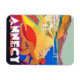 Annecy, as mulheres se divertem na praia com a costa debaixo dela e das montanhas. Viagens vintage de poster num ímã.