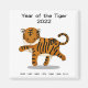 Este Ano do design Tiger é um tigre correndo a palavra chinesa para "tigre" escrita entre suas listras e os anos anteriores deste cartaz zodíaco escrito embaixo para referência. Este novo trabalho de arte só está disponível em Mozartini e é uma forma excelente de celebrar e lembrar o ano de 2022. Este artigo faz um presente de ano novo excelente especialmente para os nasceres sob este signo zodíaco nos anos 1926, 1938, 1950, 1962, 1974, 1986, 1998 e 2010.